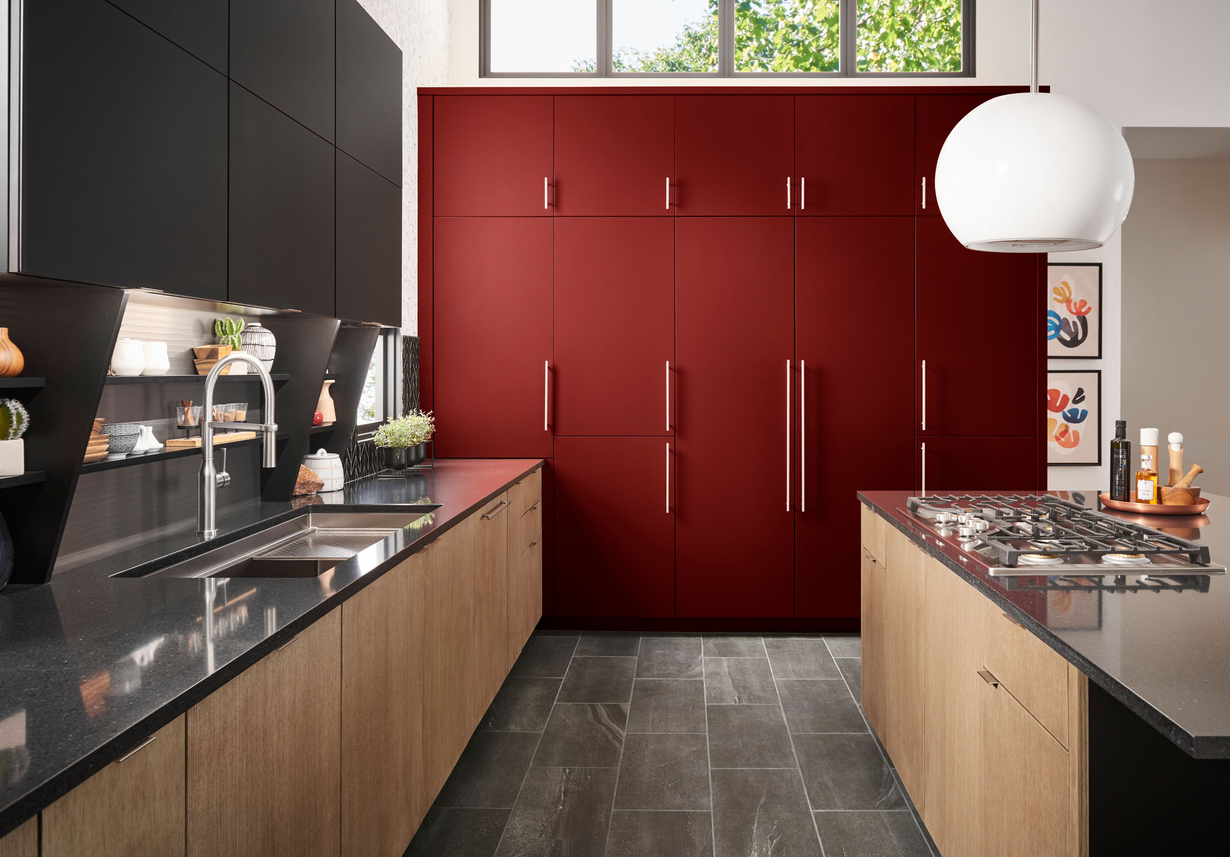With just a light touch, motorized doors lift straight up automatically and stay put, giving you easy access to everything stored inside wall kitchen cabinets.