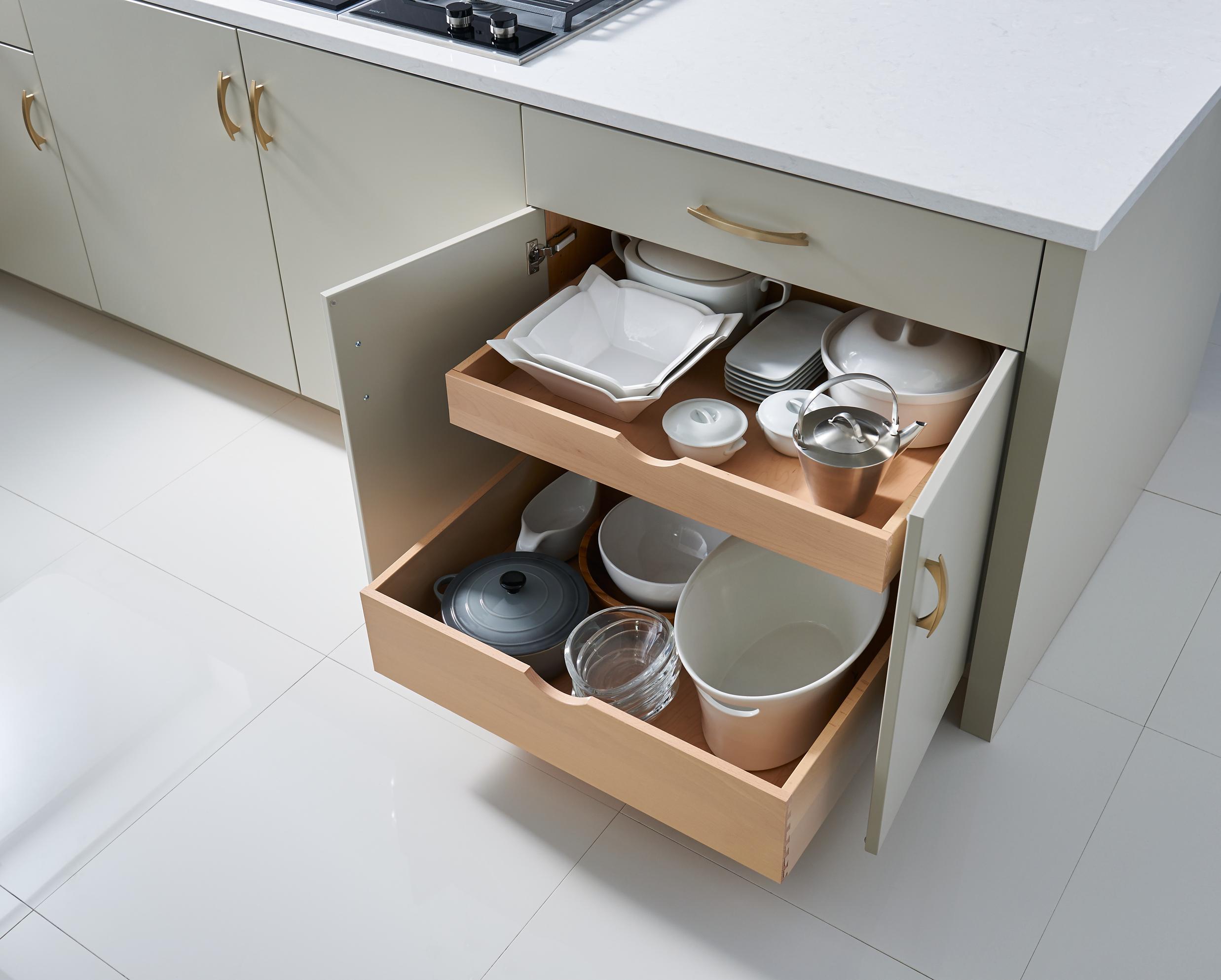 Shown in Bella MDF Chai Latte Classic and Brava Matte Glass Charcoal
