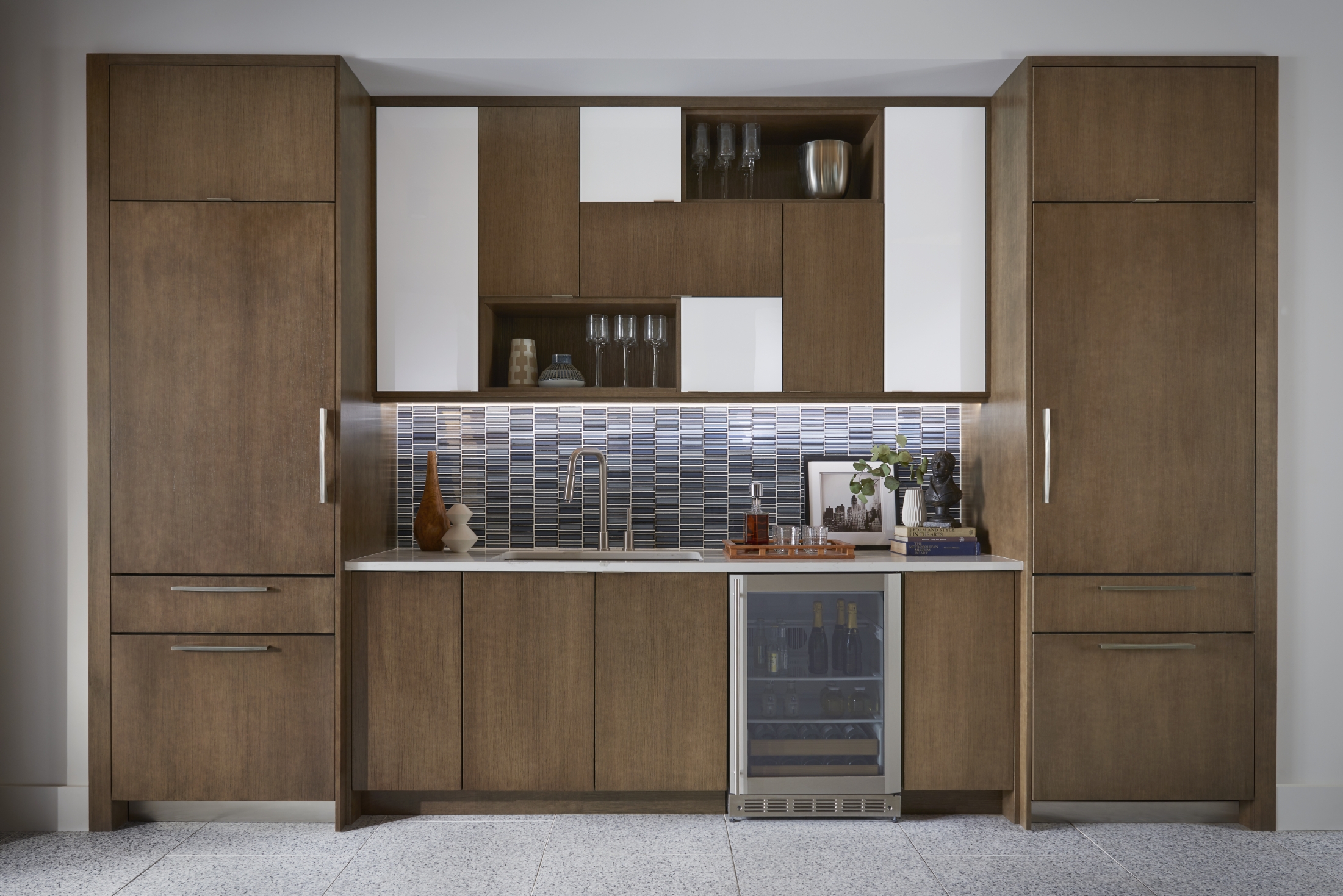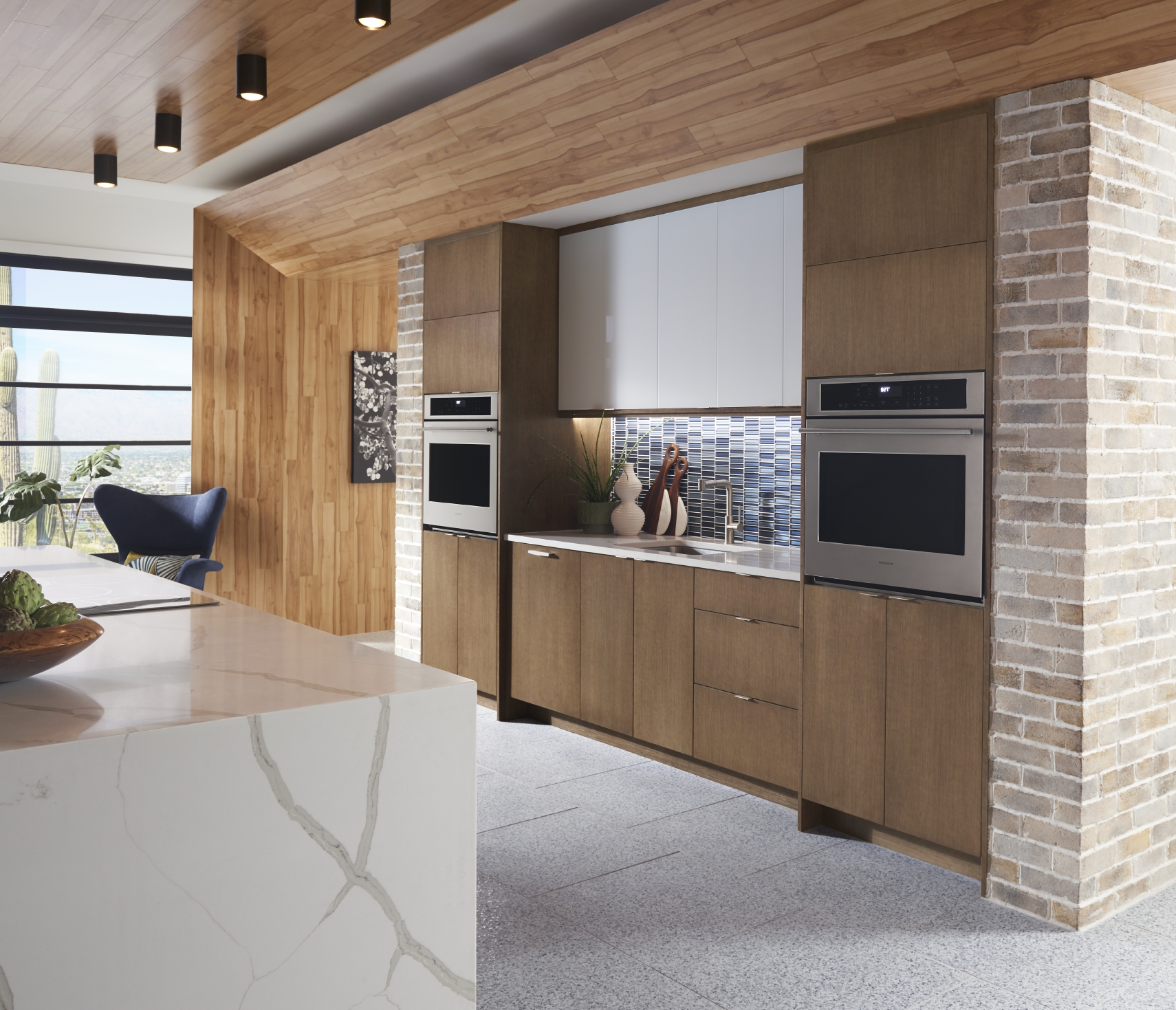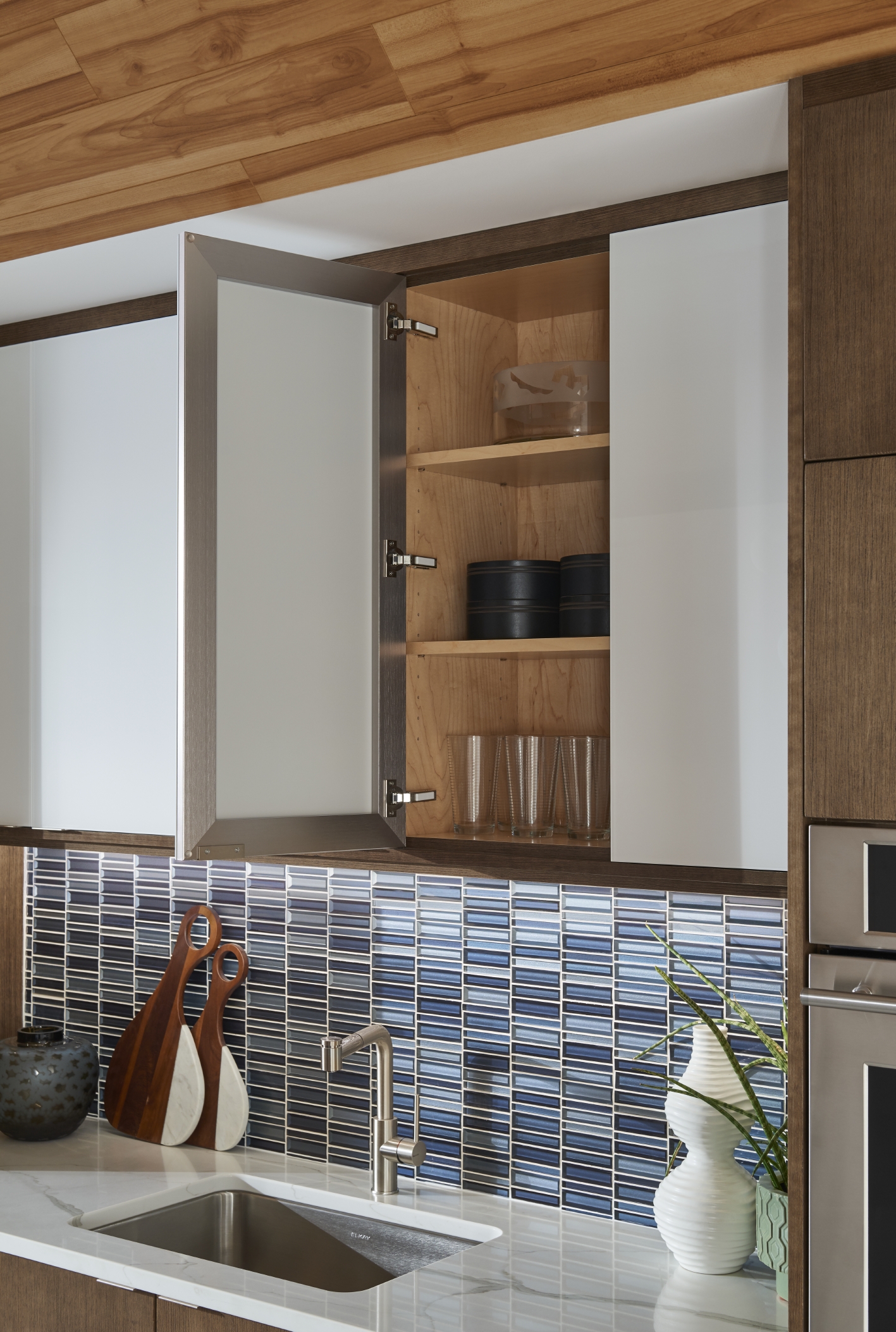 Bella in Eagle Rock on whitewood (Finish Select) and Celeste Classic with Brava brushed stainless steel and White Gloss glass.
