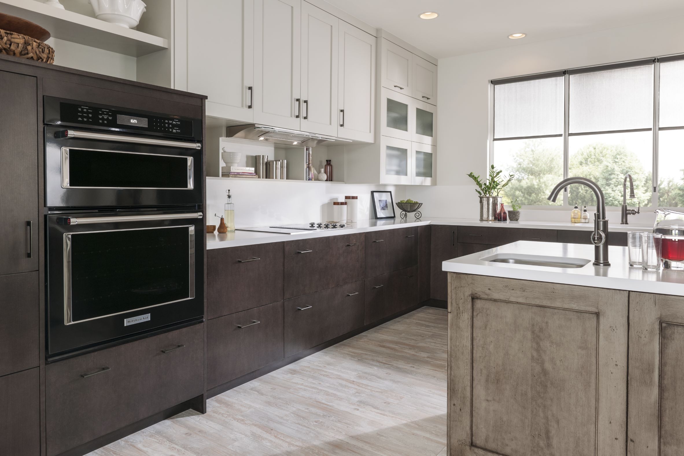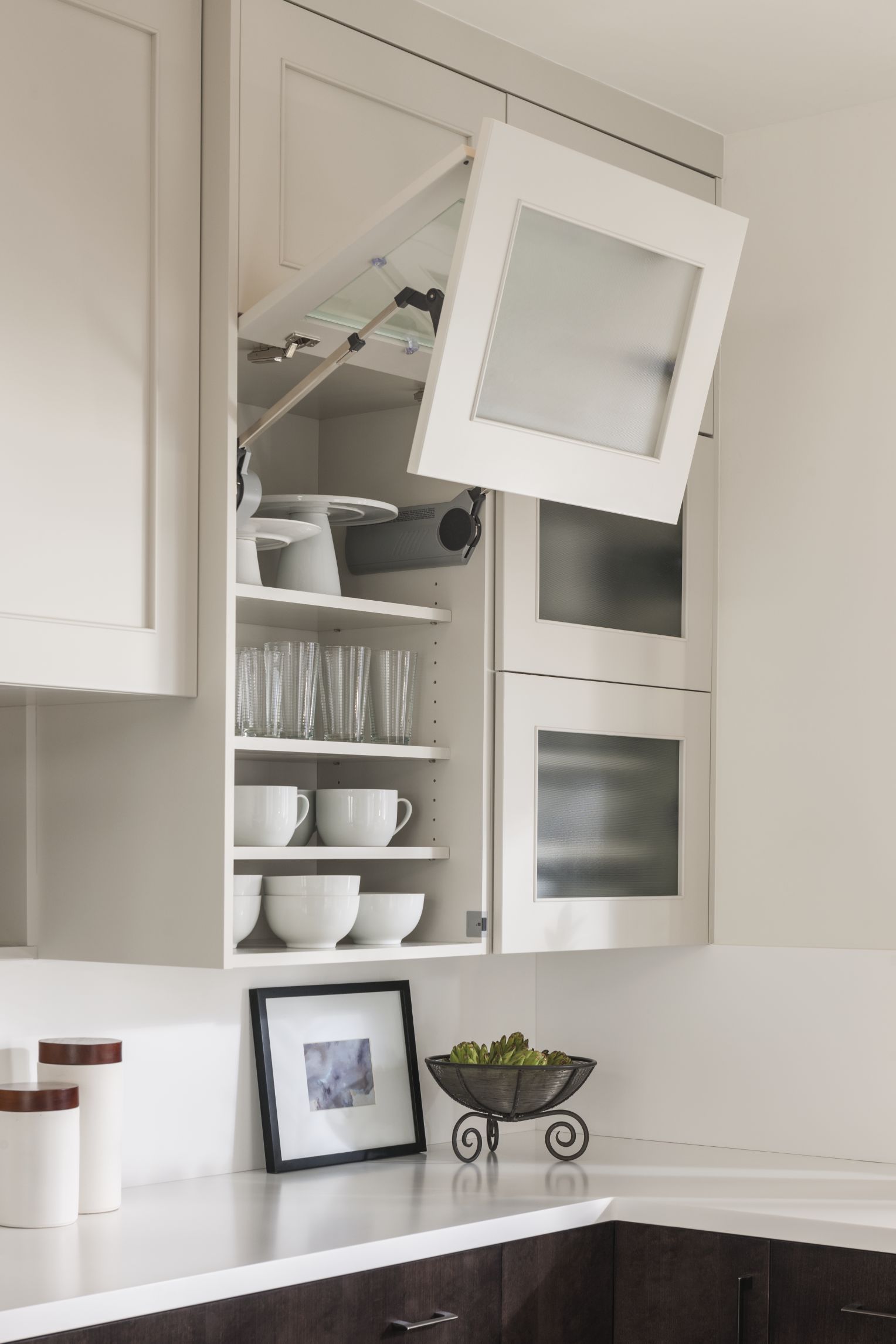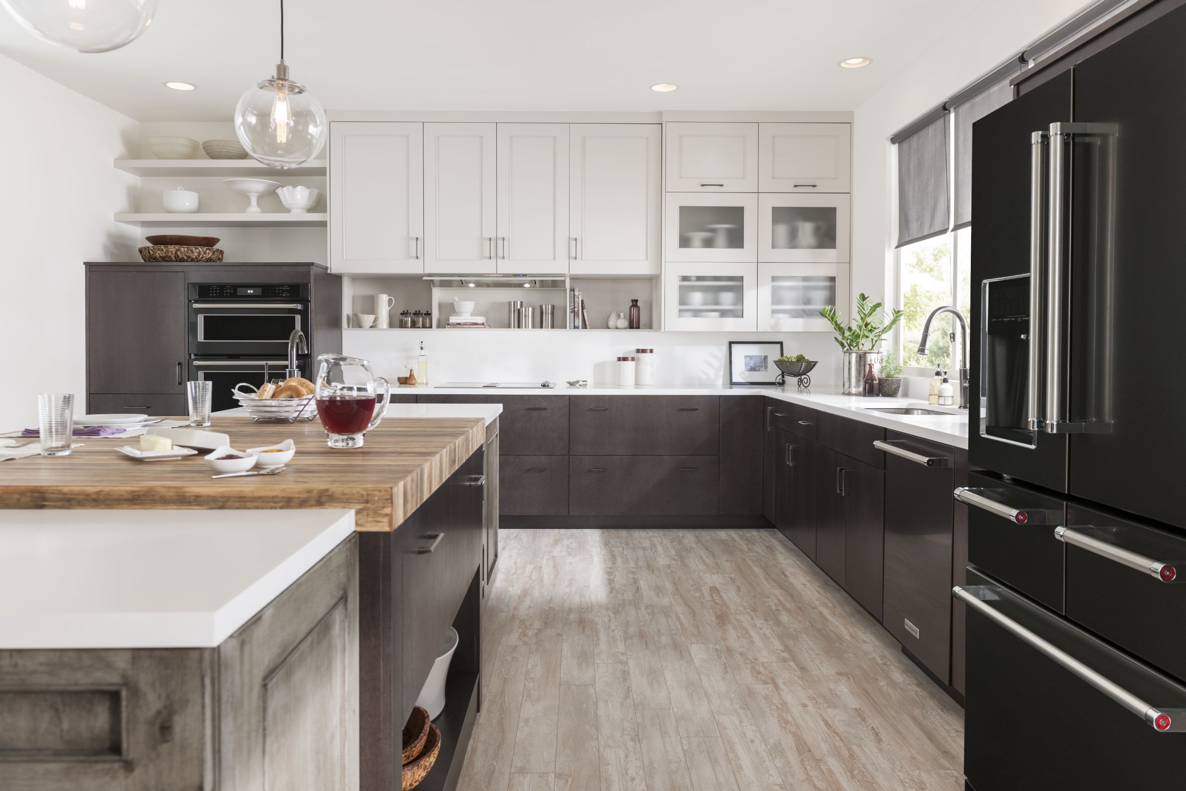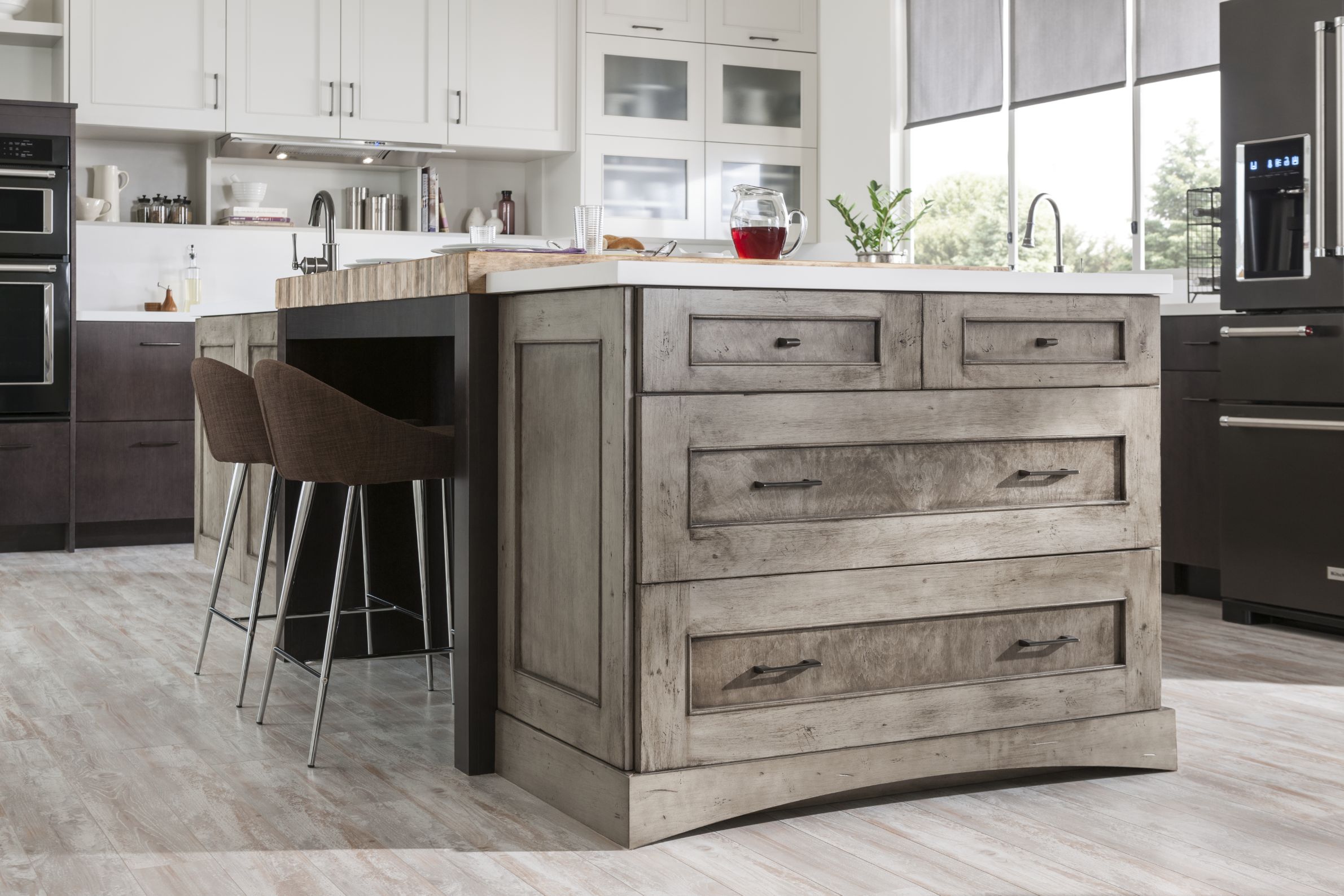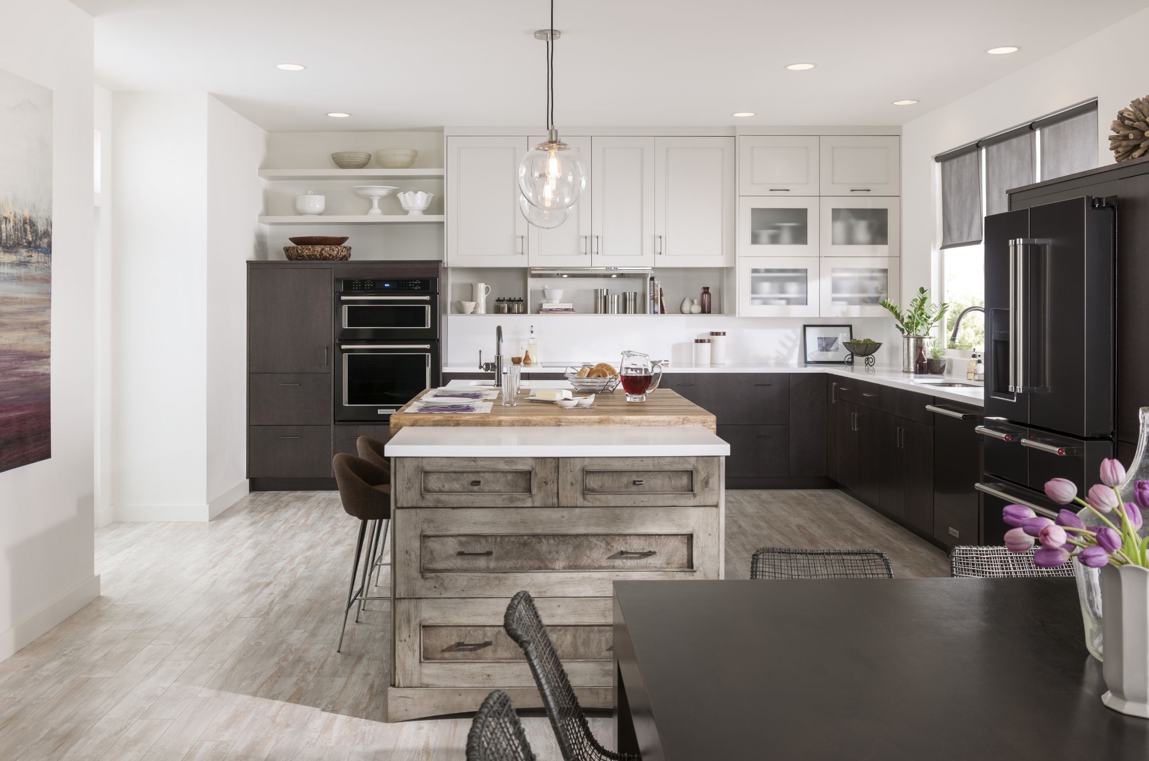 Loxley with Flat Panel in Irish Créme Classic, and Peppered Appaloosa on cherry; Bella in Smoke on heartwood.