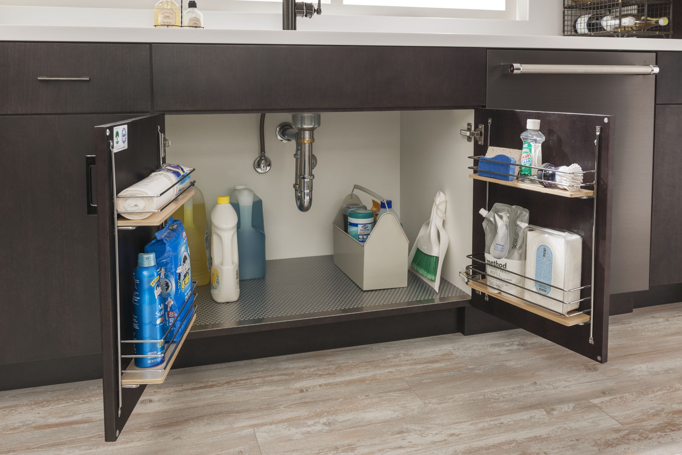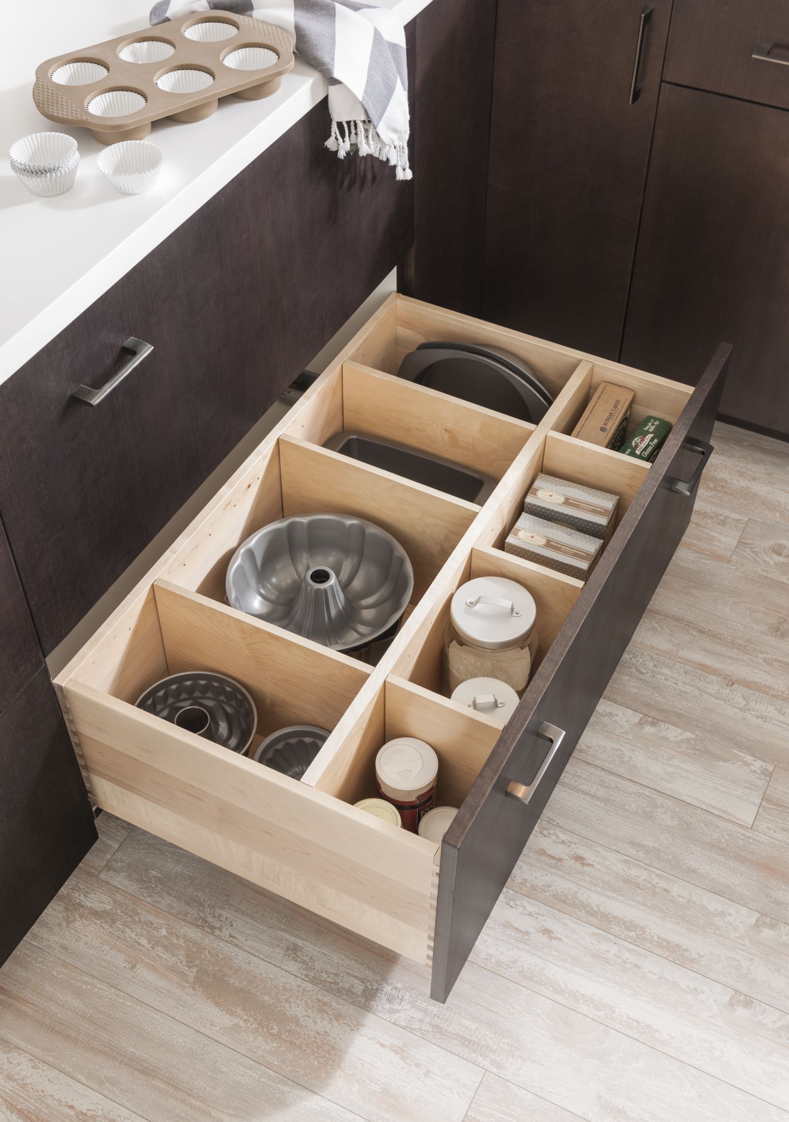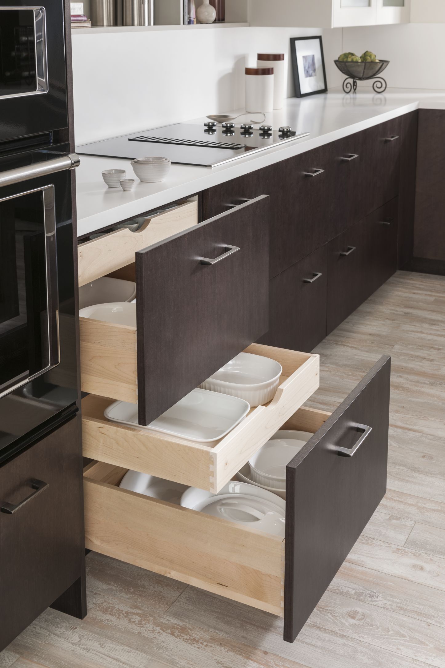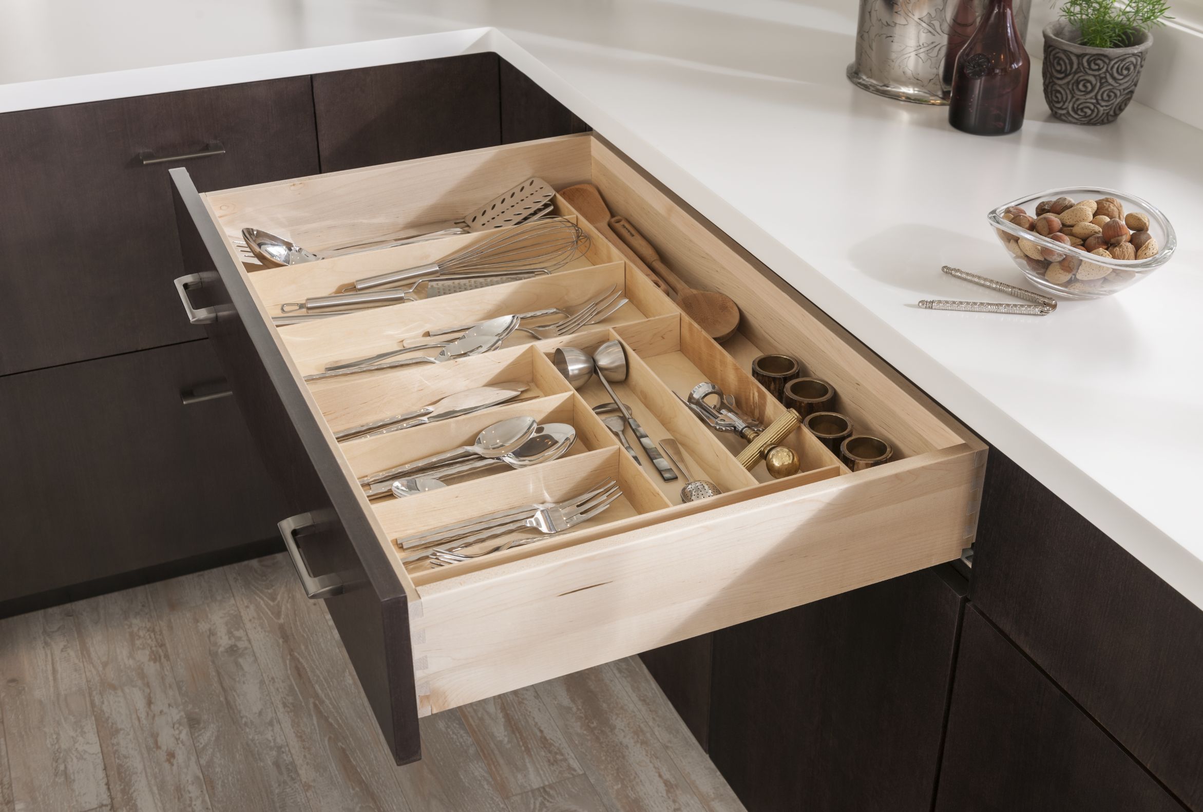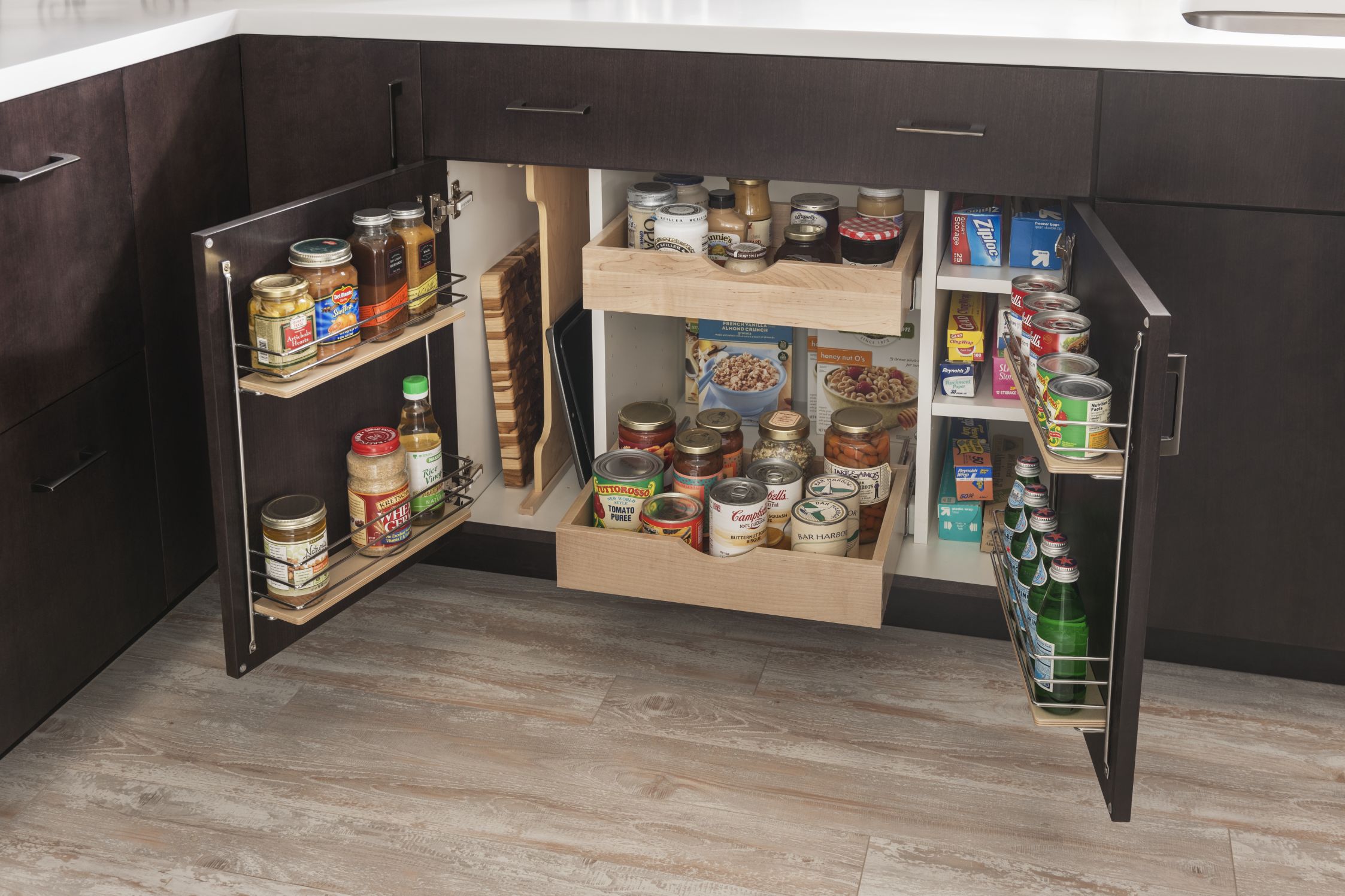 Loxley with Flat Panel in Irish Créme Classic, and Peppered Appaloosa on cherry; Bella in Smoke on heartwood.